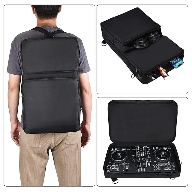 【実用的な収納スペース】メイン収納部は柔らかい裏地付きで機器を傷から守り、追加ポケットには携帯電話、充電器、ケーブルなどのアクセサリーを収納可能。DJ活動に必要な機材をすべて収納できます。