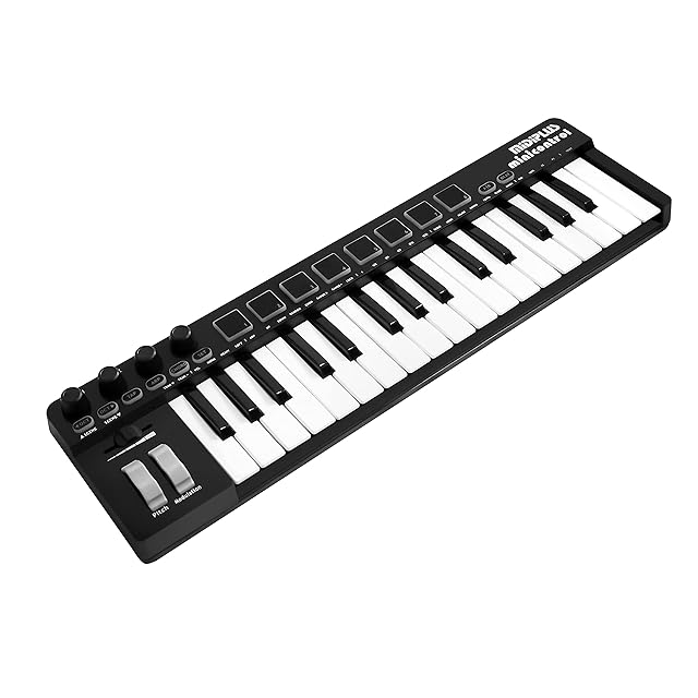 32ベロシティセンシティブミニサイズキーキーボード。 ピッチとモジュレーションホイール。 MIDIデータボリュームスライダー。 4つの編集カスタム無制限ロータリーエンコーダー。 上下にオクターブ。 上下に転置します。