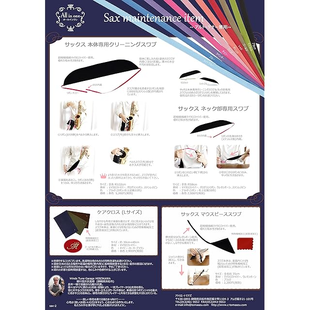 サックス 本体用 クリーニング スワブ (お手入れ用) アトリエ トマアズ (ライトブルー)