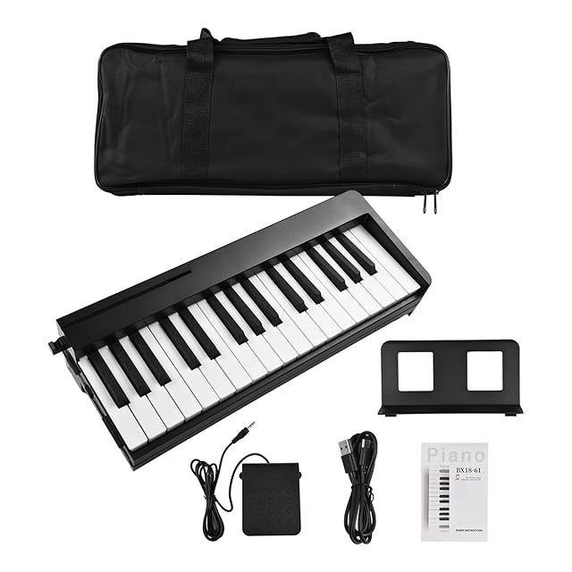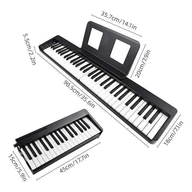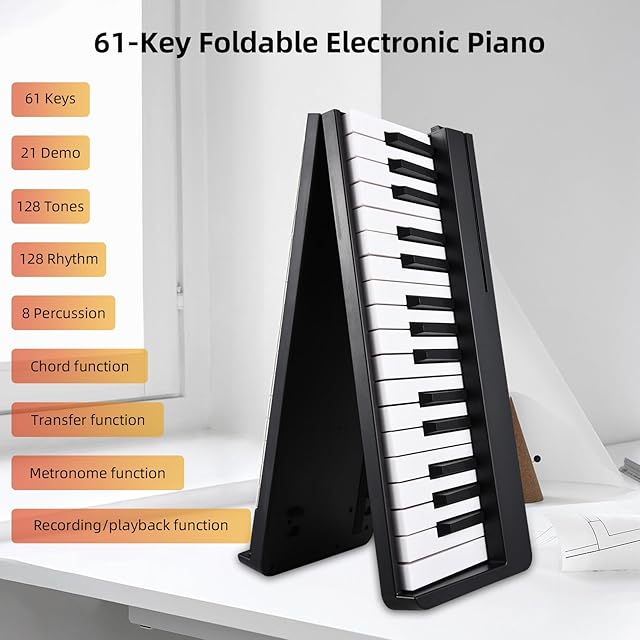 【折りたたみ可能なデザイン】: キーボードピアノは半分に折りたたむことができ、省スペースでキャリーバッグに入れて持ち運びできます。充電式バッテリーを内蔵しているので、屋外での使用に便利です。