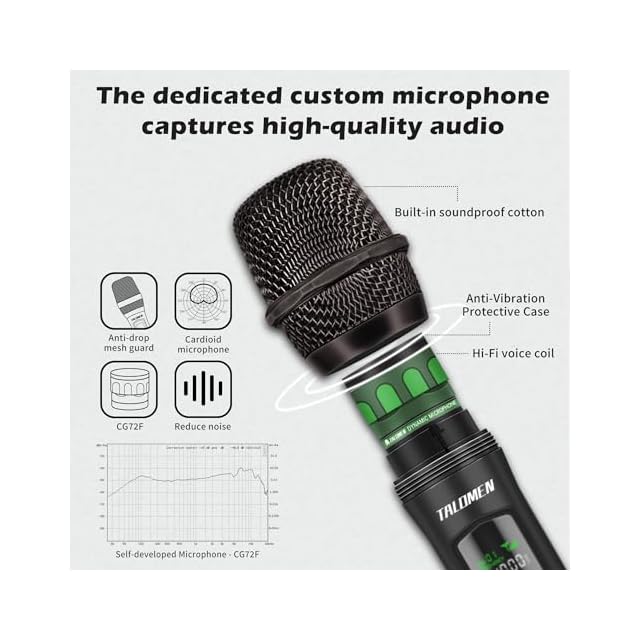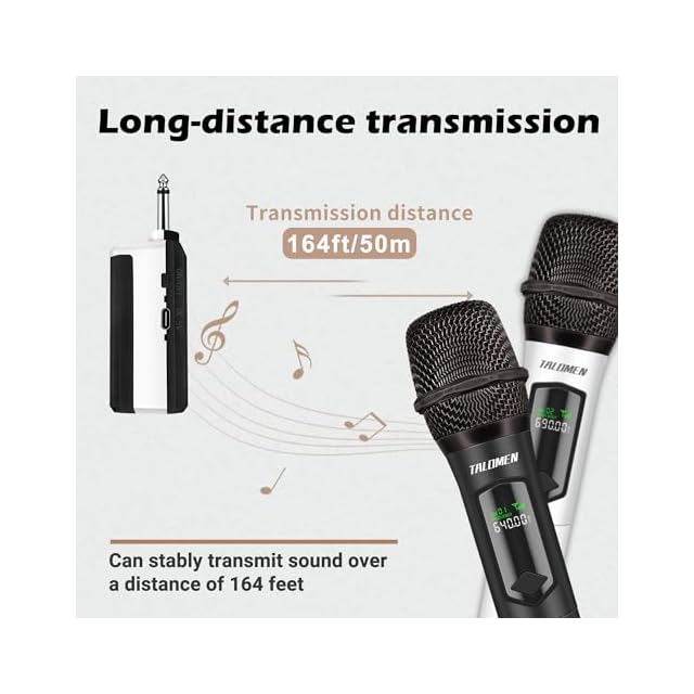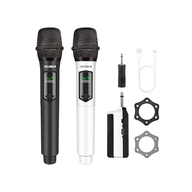 TALOMEN K602 ワイヤレスマイクロフォン カラオケマイク ムービングコイルマイクロフォン 6.35mm レシーバー付き 50M レンジ、10時間使用可能 プレゼンテーション、会議、ホームカラオケ パーティー用ワイヤレスマイクキット - 黒と白