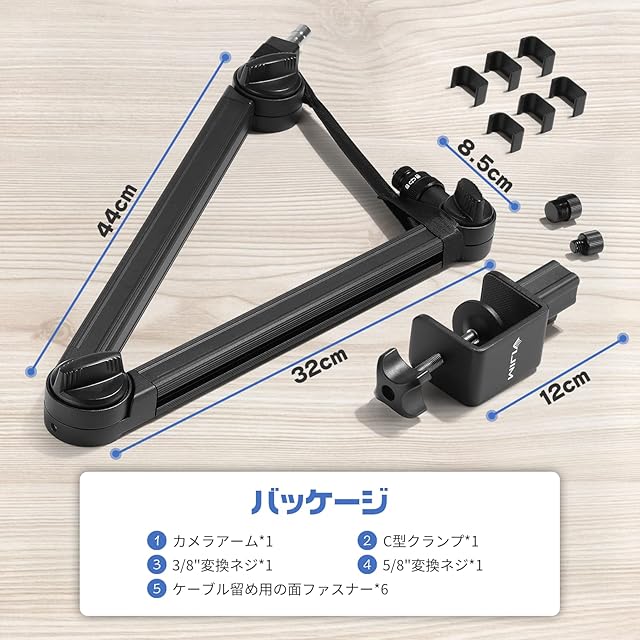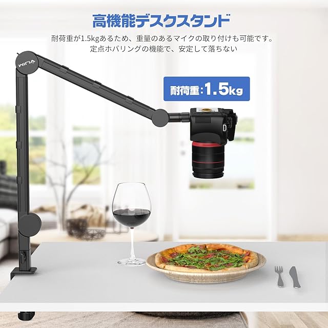 VIJIM LS25 カメラアーム マイクスタンド webカメラ アーム マイクアーム 卓上カメラスタンド クランプ式 デスクスタンド 俯瞰撮影 3段角度調節 1/4ネジ3/8 ネジ5/8変換ネジマウント付き 配信/ゲーミング/動画制作/レコーディング向け カメラ/LEDライト/マイク対応 耐荷重1.5kg アルミ製