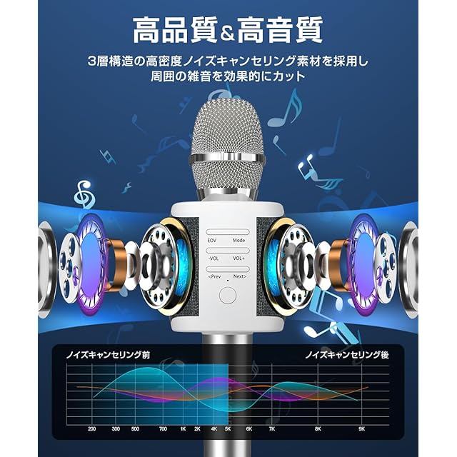 【高音質&360°立体音響】高性能スピーカー内蔵で、360°全方向からクリアな音を拾い、音のひずみを抑えて立体感あるサウンドを実現。 カラオケマイク として自宅でも高品質なカラオケ体験を楽しめるほか、音声配信やYouTube収録にも最適。 ワイヤレスマイク でもプロ並みの音質を求める方にぴったりです。