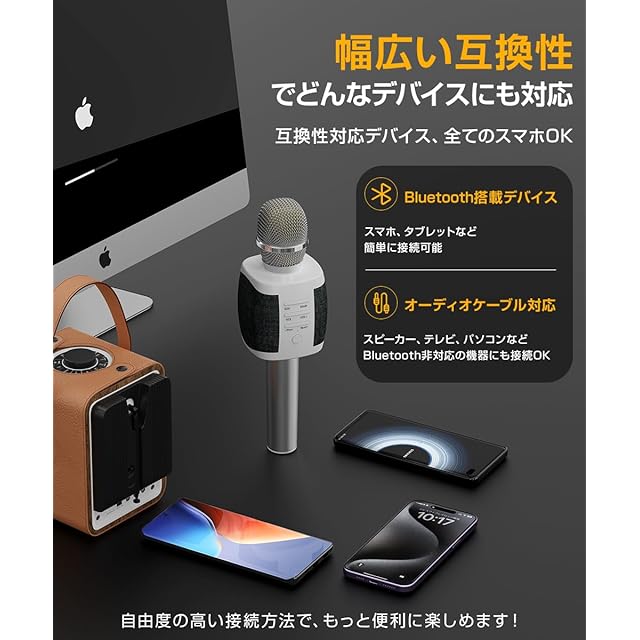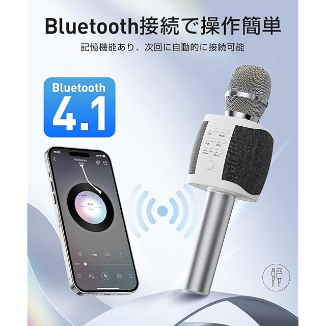 【Bluetooth 4.1対応・幅広い互換性】Bluetooth 4.1技術により、iPhone・Androidスマートフォン、タブレット、PCなど様々なデバイスに対応。接続はわずか数秒で完了し、音切れや遅延の心配もなし。カ ラオケマイク として、音楽アプリやYouTubeと組み合わせれば、どこでも即席カラオケルームに!