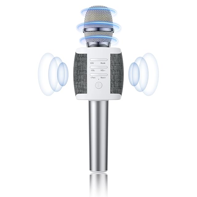 カラオケマイク 高性能 【2025年新登場・多機能ワイヤレスマイク】 Bluetooth 4.1 スピーカー内蔵 録音マイク ノイズキャンセリング 3段エコー調整 音量調節対応 家庭カラオケ 一台多役 録音/ライブ配信/スピーチ/講義/家庭用 Android/iPhone対応 軽量 収納ケース付き (グレー)