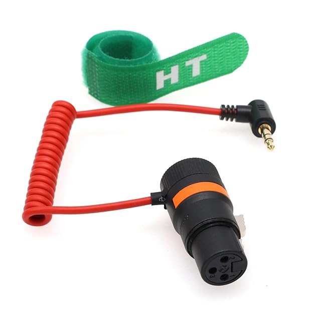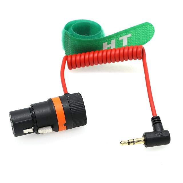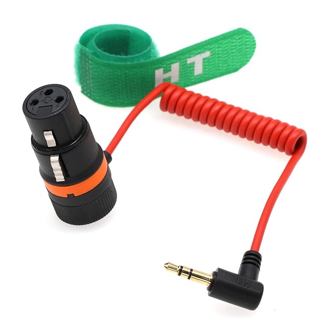HangTon XLR 3ピンから3.5mmミニジャックオーディオケーブル BOYA Rode MicからRED Komodo 6K DSMC2 カメラ 電話 コンピューター PC用 直角オス レッド 編組コイル 50cm