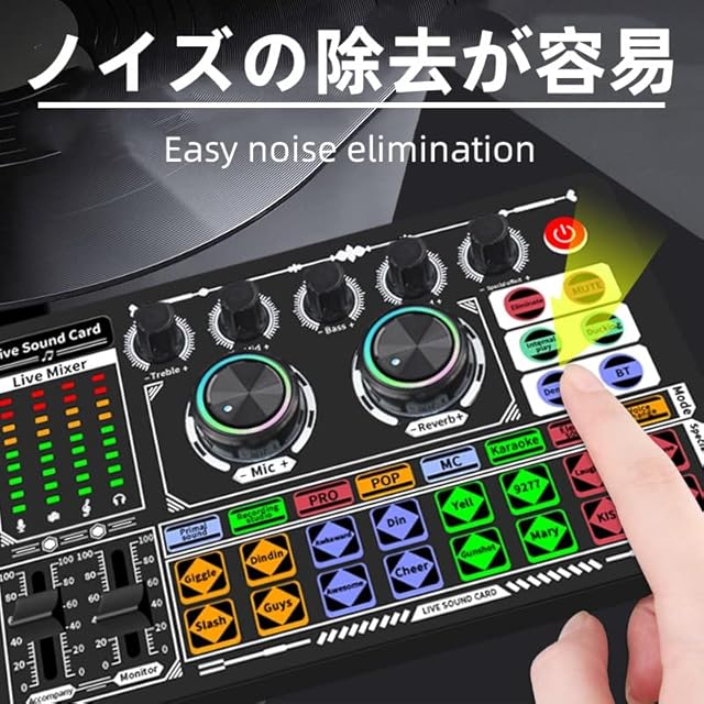 BONKYO F999 カラオケセット家庭用 DJ ミキサー セット ライブ サウンドカード 男声 女声 ボイスチェンジャー/マイク スタンド タブレット アーム スタンド/マイク ポップガード ポップブロッカー クランプ式 実況者や家庭用カラオケに適用 日本語説明書付き 黒