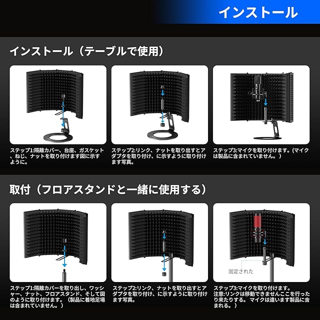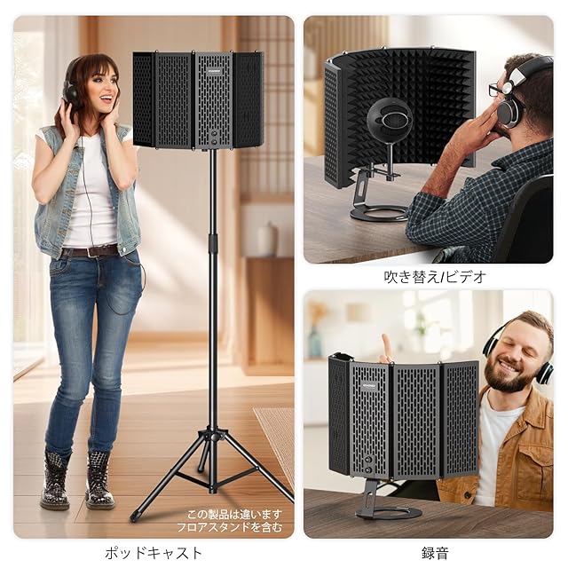 マイクアイソレーションシールドは、防音フォームフロントと通気性のあるメタルバックパネルを備え、録音中のノイズを除去します。 ボーカルトラックを少しクリアにします。 (三脚は含まれません)。