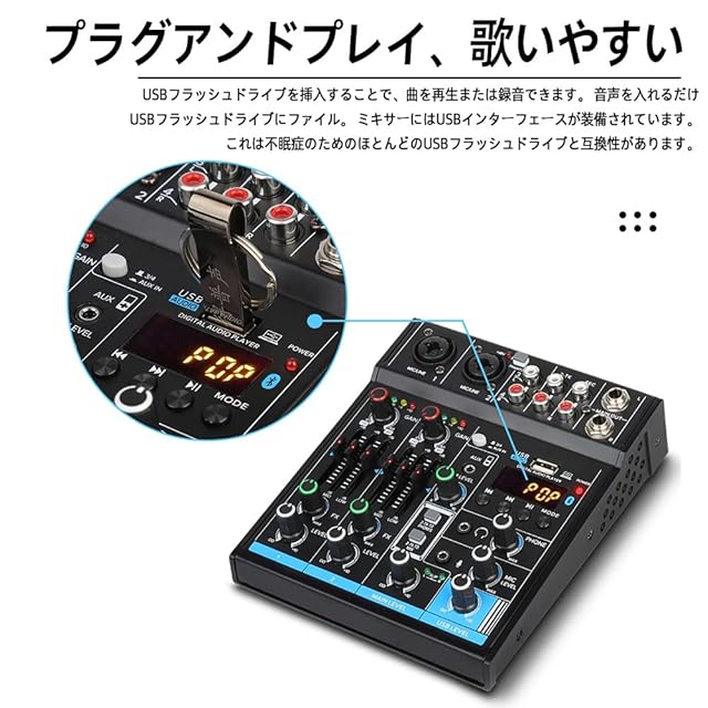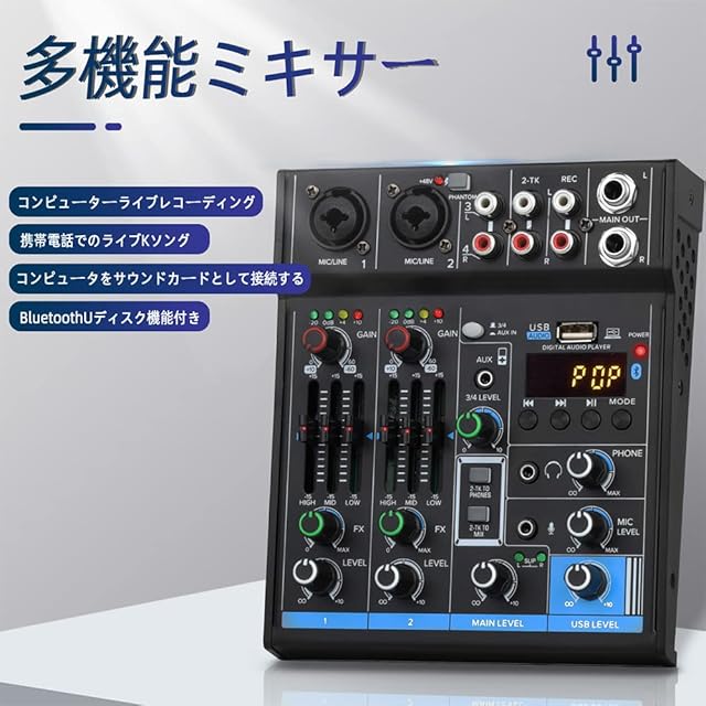 このオーディオミキサーへのBluetoothワイヤレスストリーミングIOS、Androidスマートフォン。 SpotifyまたはPandora.Bluetoothからのミキシングボードへのすべての音楽曲の曲を非常に簡単にストリーミングするのは非常に簡単です。