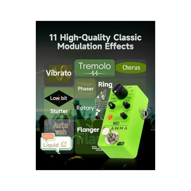 FLAMMA FC05ミニ モジュレーション ペダル コーラス フランジャー トレモロ フェイザー ビブラート ロータリー 液体 オートワ スタッターリング ロービット付