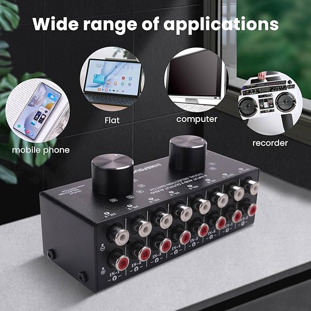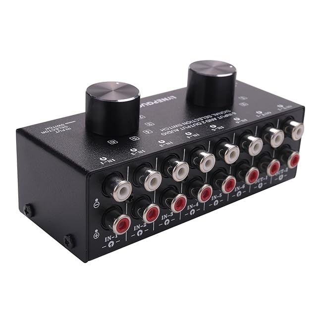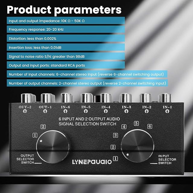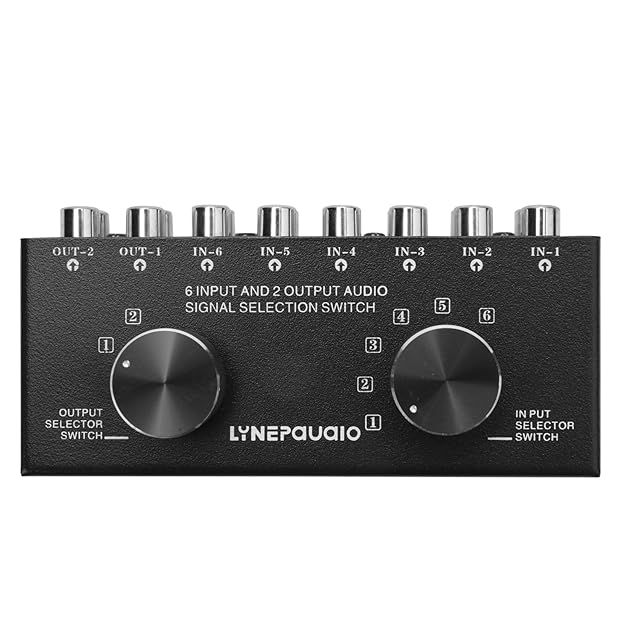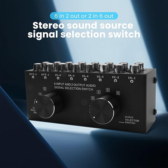 Buerjia スイッチャー 6 入る2 出るまたは2 入る6 出るヘッドフォンスピーカースイッチャー ステレオ音源信号選択スイッチャー、インターフェースはデザインを採用 手動スイッチ