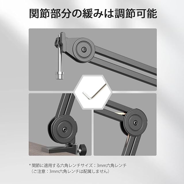 【幅広い用途】マイクと幅広い互換性のある5/8"のネジを提供し、様々なシーンで活躍できます。自宅録音やパソコンでの配信で一人でも自在にチュニックをしながら、スタジオのような体験を身をもって味わえます。金属製で耐久性の高いデスククランプが採用され、5cmまでの天板の厚さに対応し、そのまま震えない声が本格的な録音をできます。