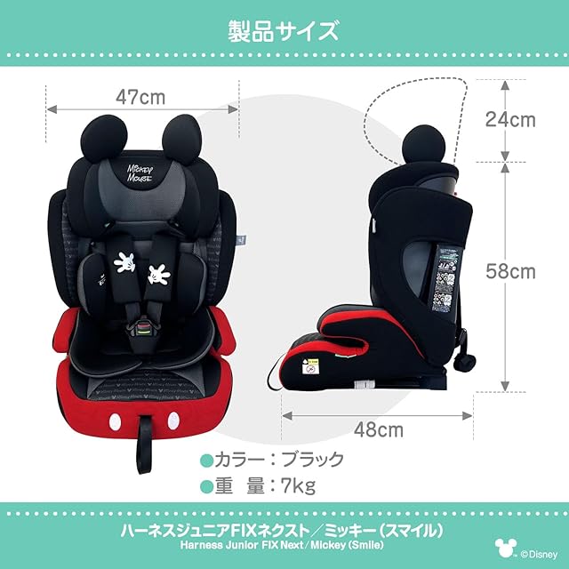 ディズニー ハーネスジュニア FIXネクスト/ミッキー(スマイル) ISOFIX 月齢15か月以上 チャイルドシート ジュニアシート ロングユース R129