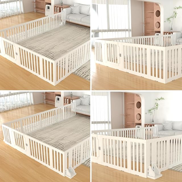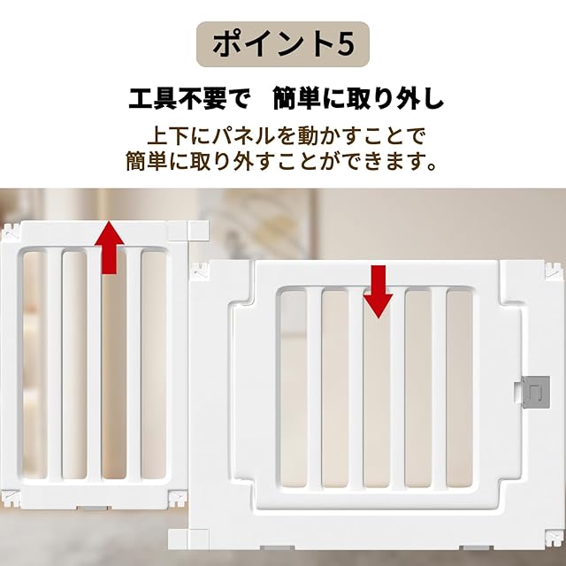 【簡単な設置】ベビーサークルの取り付けは非常に簡単で、工具は必要ありません。固定ホルダーで各板を接続するだけで、組み立てることができます。女の子でも一人で簡単に設置が完了できます。ベビーサークルの設置が説明書に従って、15分程で終わります。