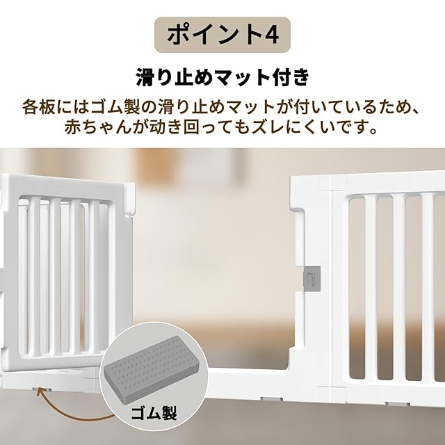 【外部からのみ開閉可能】ベビーサークルを開けたいときは外側からしか開けられない、ベビーサークルの外側のみにロックが付いている設計なので、大人はベビーサークルの外側から簡単にベビーサークルを開けることができます。赤ちゃんはベビーサークルから脱出を効果的に防ぎます。
