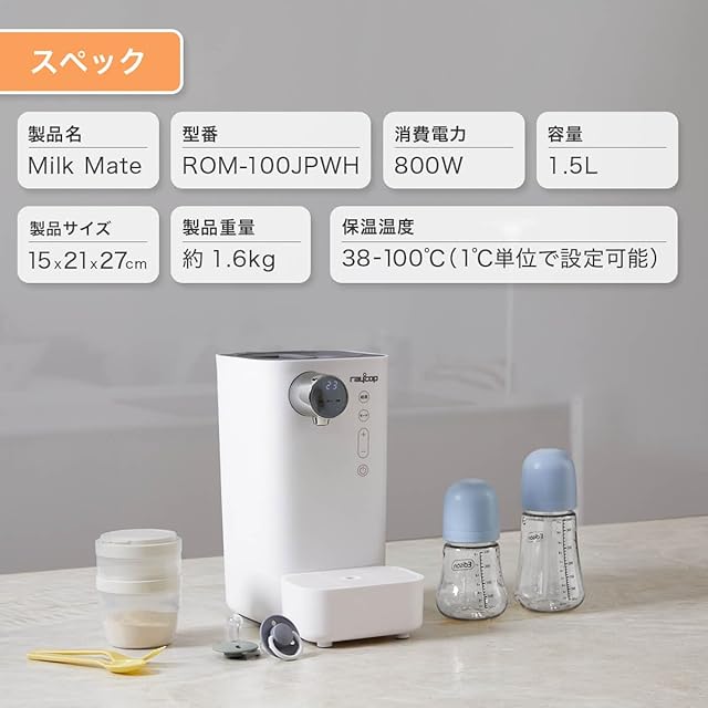 レイコップ ワンタッチ 自動調乳機 ミルクメイト ROM-100 Milk Mate 粉ミルクメーカー スマートワンタッチで簡単ミルク作り 1℃単位で保温設定 加熱 1.5L大容量 授乳用品 赤ちゃん用品 消毒 哺乳びん