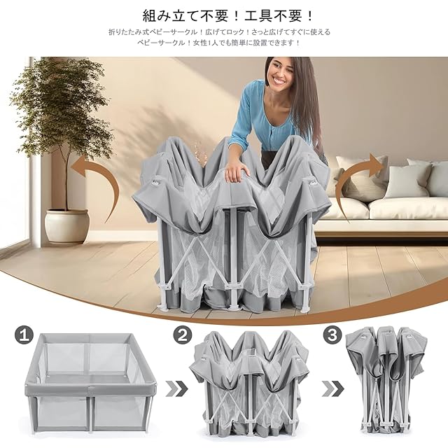 折りたたみ式ベビーサークル:このサークルは赤ちゃんの自立心と集中力を促進し、室内外で遊べる遊び場を提供します。赤ちゃん サークルは新しい折りたたみ技術を採用しており、開くだけですぐに使えます。他の製品に比べて組み立てが簡単で、貴重な時間を節約できます。本製品にはベビーマットも付属しています。