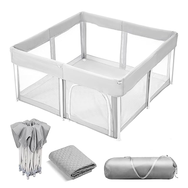 ベビーサークル 折りたたみ サークル 赤ちゃん メッシュ ベビーフェンス キッズサークル プレイヤード 組立不要 工具不要 ベビーマット付き 収納バッグ付き (125*125(cm))