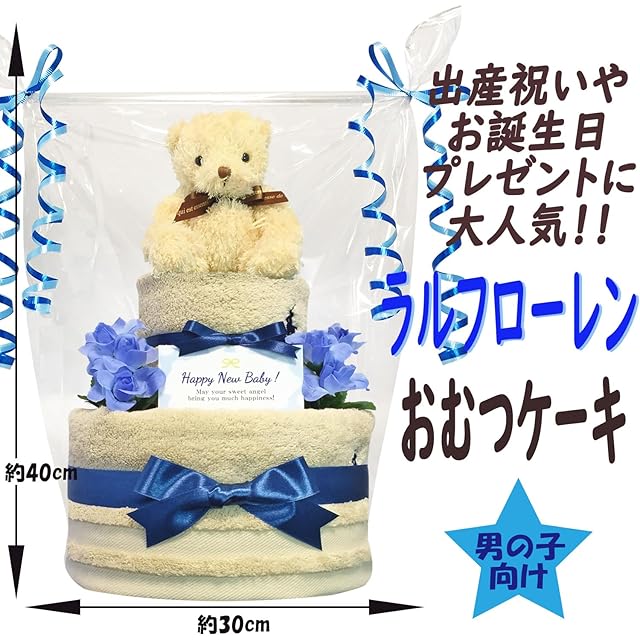 KanonBabys おむつケーキ 男の子 ラルフローレン 出産祝い 2段 Sサイズ 3001