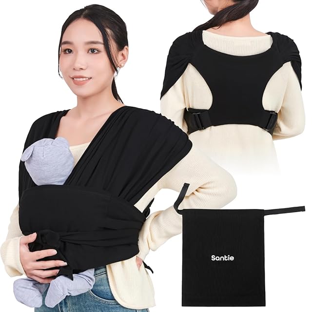 [Santie] 抱っこ紐 簡単に脱着減圧設計 サイズ調整可能 日本JIS検証済み 新生児-20kg (ブラック, M-4XL)