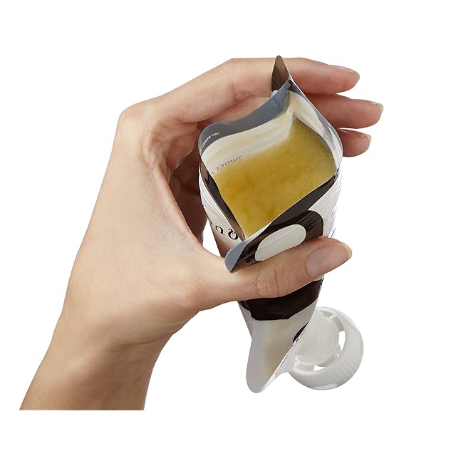 高耐久な素材を使用:何度も使えるパウチは耐久性があり、BPAフリー。フタル酸塩、PVC、鉛を含まない素材で作られており、喉に詰まらないキャップを使用しています。漏れ知らずなことも特徴です。ダブルジップ密閉構造で、中身を新鮮な状態に保ち、液体漏れを防ぎます。お子様の手ではパウチを開けることはできません。