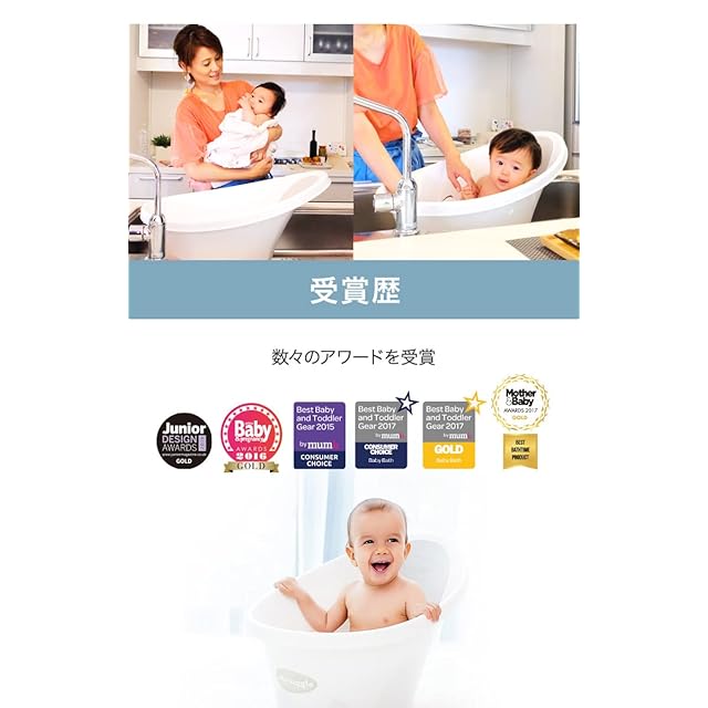 【沐浴時のママの悩みを解決】お尻ストッパーで片手でも赤ちゃんを支えられるから、腕が疲れない!洗いやすく、キッチンのシンクでも使える省スペース設計です。立ったままお世話できるので、ママの腰にもやさしいベビーバスです。