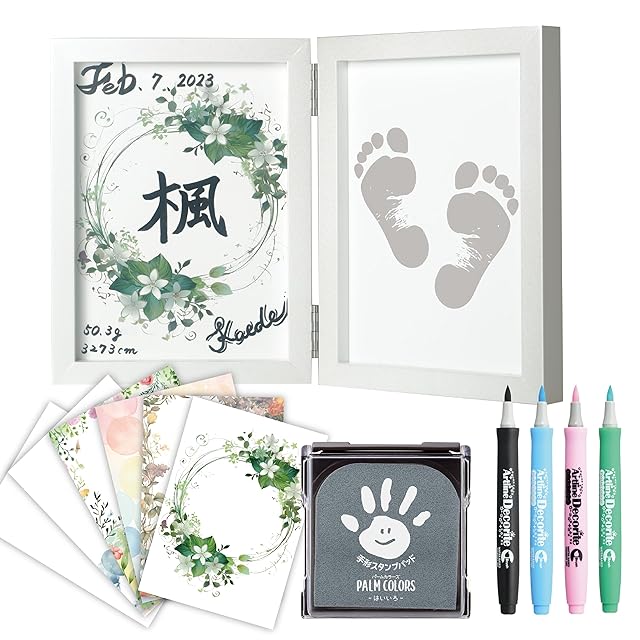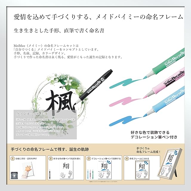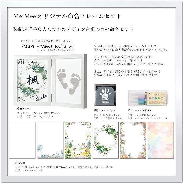 【命名フレームセット】 MeiMee 自分でつくる メイドバイミーの命名フレーム 「パールフレームミニW」 キャビネ(2L)サイズ×2 | パールホワイト
