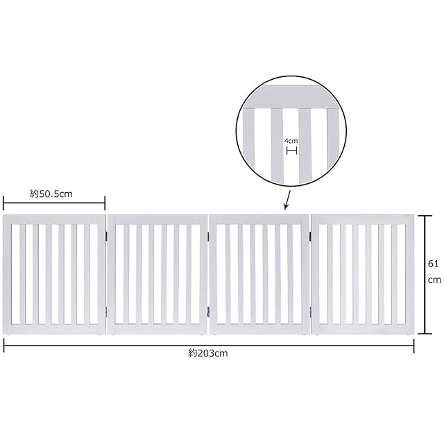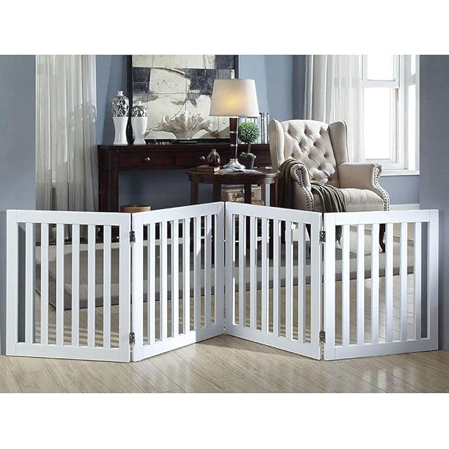 unipaws 木製犬用ゲート、折り式バリア、ペット用家具フェンス 、白い