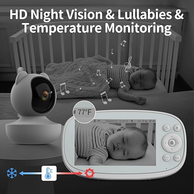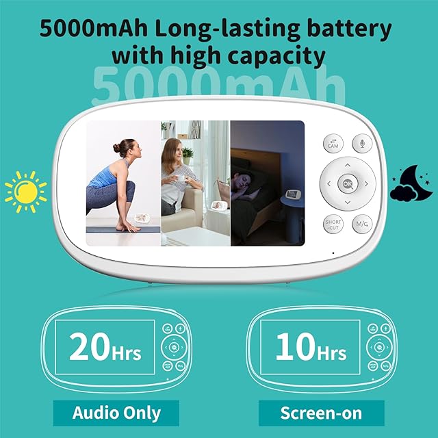 【5.5'' HD スクリーンベビーモニター】VIZOLINKベビーモニター高解像度5.5インチ720PデジタルカラーLCDスクリーンで、より詳細でより正確な画像を提供することができます。5000mAhのバッテリーを内蔵し、10-20時間のモニタリング(10時間の連続使用)、新生児、ペット、高齢者に非常に適して動作することができます。