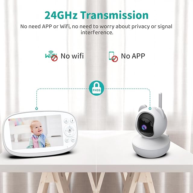 【350m範囲と100%プライバシー保護】2.4GHz FHSSワイヤレスデジタル伝送して、安定した信号伝送距離は最大350M(オープンスペース)APPやWiFiがなくてもOK!プライバシーを心配しなく、電波が混線しても安心です。家の防犯対策に設置したり、介護用に使ったり、ペットの見守りに使ったり、さまざまな目的に応じて使うことができます。出産祝いのプレゼントにもおすすめです。(モニターコントロールを使用する前に、まず接続してください)