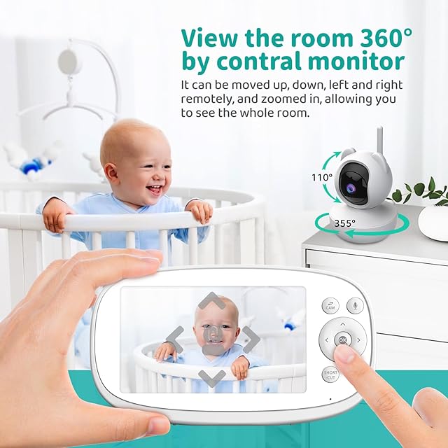 【カメラ角度調整とVOX機能】寝返りやハイハイで移動したら、赤ちゃんの動きに合わせて、カメラの角度(上下左右)をモニター(親機)から操作できます。カメラ角度調整範囲:左右355°、上下110°。 ズーム機能が内蔵されている、最大5倍ズームまでで小さいモノも見逃しません。VOXをONにすると、音検知を起動します。赤ちゃんが泣いているときに画面が自動でオンになり、静かなときに画面がオフになります。