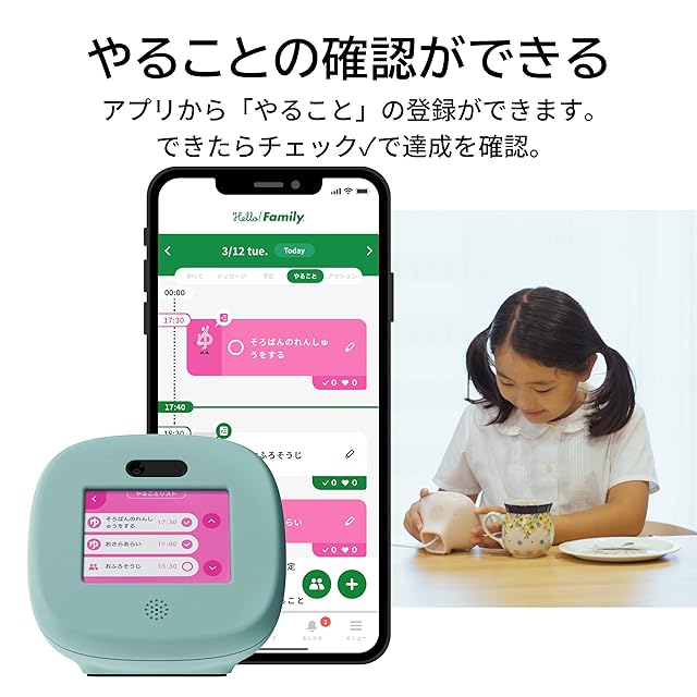 【公式】コクヨ 見守り 留守番モニター はろもに 子供 月額費不要 携帯電話の代わりに ボイス メッセージ todoリスト 学童 簡単操作 習慣化 スマートホーム 防犯 iOS Android対応 見守りおもちゃ ハローファミリー (アイシングターコイズ)