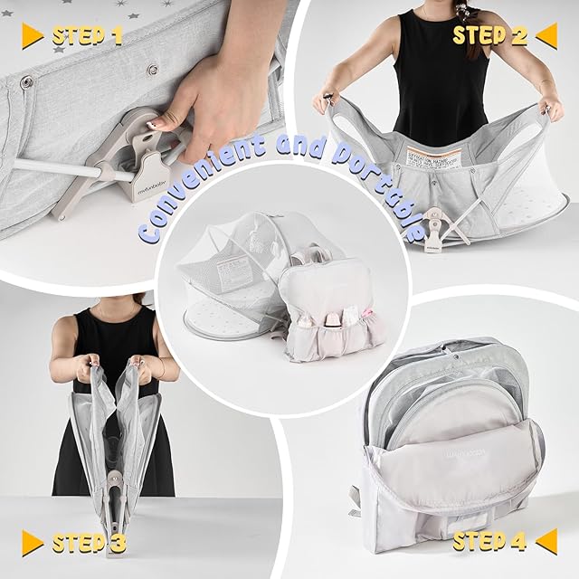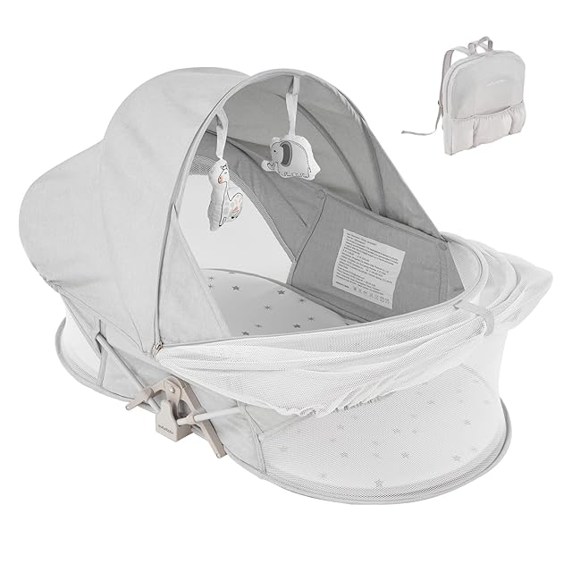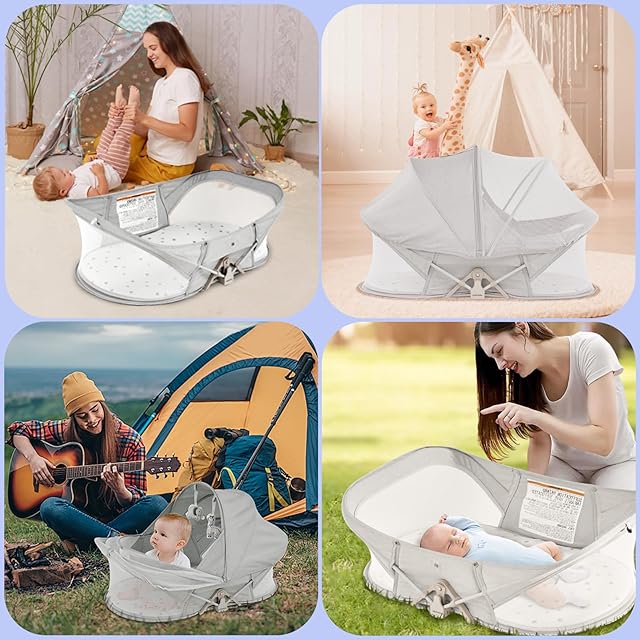 【いつでも快適を提供】: 60%以上の高密度通気性メッシュデザイン、0から6ヶ月の赤ちゃんのための旅行バシネットは、屋外での使用でもあなたの幼児の快適さを確保することができることを確認するために、肌に優しいと通気性のファブリックスリーピングパッドと、良好な通気環境を提供し、赤ちゃんのベッドの底部は、草の中で、赤ちゃんの休息に影響を与えません防水素材です!