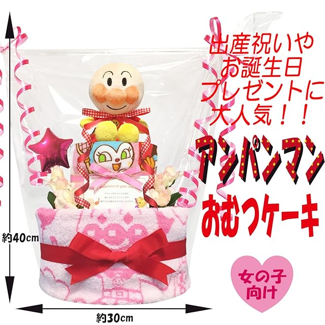 アンパンマンの可愛らしいデザイン: 女の子にぴったりの可愛らしいアンパンマンがデザインされたおむつケーキは、見るだけで心が温まるキュートさ。赤ちゃんの誕生を祝う最高の贈り物です。
