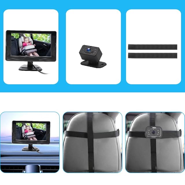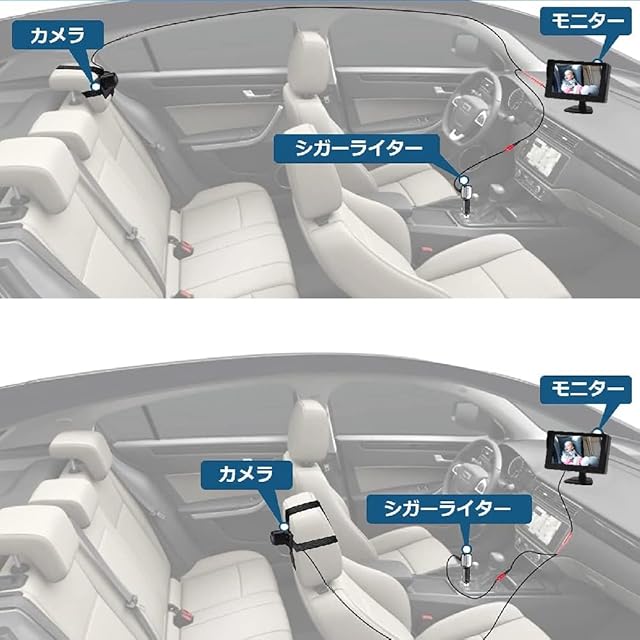 【取り付け簡単】モニターをセンター コンソールの中央に取り付け、カメラをヘッドレストにストラップで固定してケーブルを隠します。ベビーモニターとベビー監視カメラは車内のシガーライターから給電できます。煩わしい配線が不要、初心者でも簡単に設置できます。