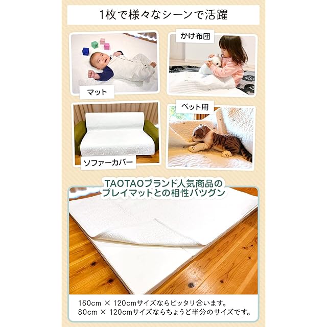 【TAOTAOブランド人気商品のプレイマットと併用可能】120cm*160mサイズならピッタリ合います。 80cm*120cmサイズならちょうど半分のサイズです