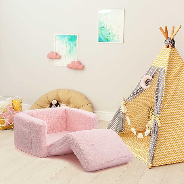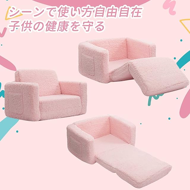 ALIMORDEN 子供用ソファー キッズソファーベッド ベビーチェア 赤ちゃん座椅子 お座り練習 可愛い ふわふわ 背もたれ 折りたたみ 一人掛け プレゼント ピンク
