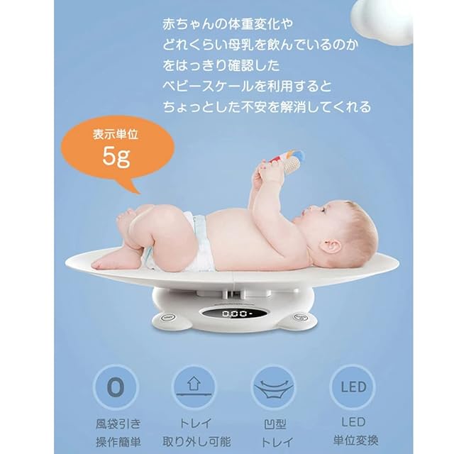 【高精度・赤ちゃんの成長を見守る】ママとパパはじめての子育てで不安がいっぱい。 母乳は出ているけど、赤ちゃんはちゃんと飲んでくれている?ベビースケールを使用すると、赤ちゃんの母乳摂取量を分かるし、赤ちゃんの成長を適切に保護することができます。 さらに、高精度により、子供の成長中の体重変化をはっきりと見ることができます。授乳している赤ちゃん日々の成長がひと目でわかる!
