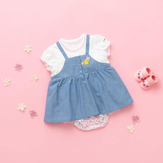 夏におすすめのショートオールとソックスのセットです。 チュニックデザインのショートオールとバレエシューズ風のデザインのソックスで、 重ね着が難しいベビーちゃん時期でも一枚で簡単にかわいくおしゃれを楽しめるセットです。 お箱に入っているので出産祝いなどのギフトにぴったり◎ 冬生まれの赤ちゃんが初めての夏に着ていただけます。