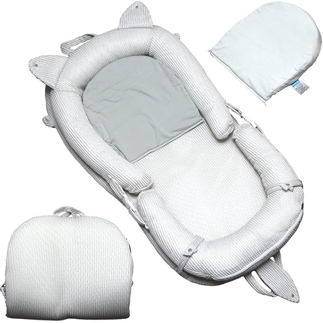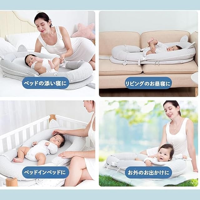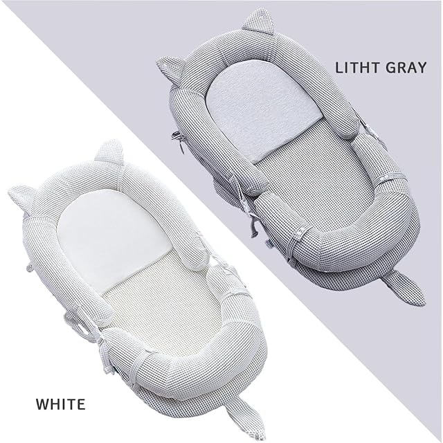 ねこ耳付き ベビーネスト ベッドインベッド 持ち運び 通気性がよい 洗濯可能 折り畳みベッド 安全 安心 出産祝い 吐き戻し防止マット付き ポータブル 折りたたみ式 寝返り防止 新生児 携帯型ベビーベッドライトグレー (ホワイト)