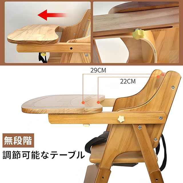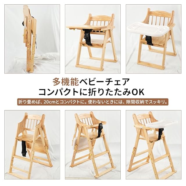 ZOOBLY ベビーチェア ハイローチェア 完成品 折りたたみ 木製 足置き2段階調整 ダイニング 二層テーブル 一台多役 4段階高さ調整 立ち上がり防止 ベルト付き 子供用椅子 キッズチェアー 離乳食 お手入れ簡単
