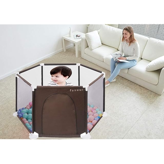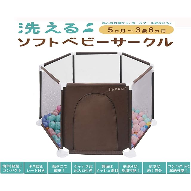 ベビーサークル 折りたたみ サークル キッズランド ベビー 安全 フェンス グッズ 六角形 洗えるベビーサークル ブラウン