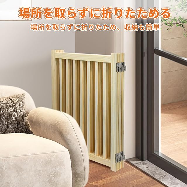【便利な収納】折りたたみ式で軽量、持ち運びや収納が簡単。木製フェンスの隙間はわずか4センチ、どんなに小柄の猫ちゃんも脱出できず、しっかりと保護できます。高い密度により、安定性もアップされます。