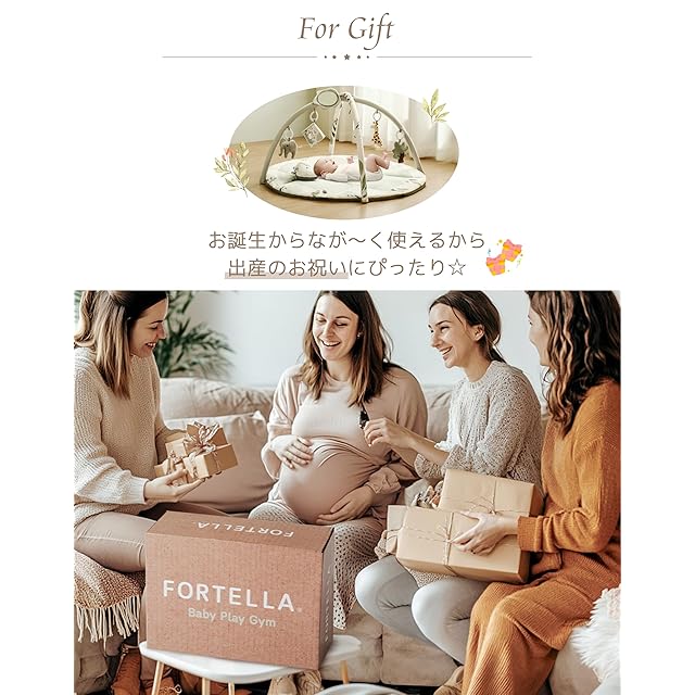 「新生児の必需品」Fortellaのベビージムで楽しいタミータイムをお過ごしください!感覚、運動、認知を刺激するさまざまなおもちゃで、赤ちゃんがいつでも楽しく盛り上げます。5つの吊り下げおもちゃとサポートピローががセットになっており、赤ちゃんが遊びながら学び、成長する過程で聴覚、触覚、手と目の協調、そして認知能力を発達させる設計です。