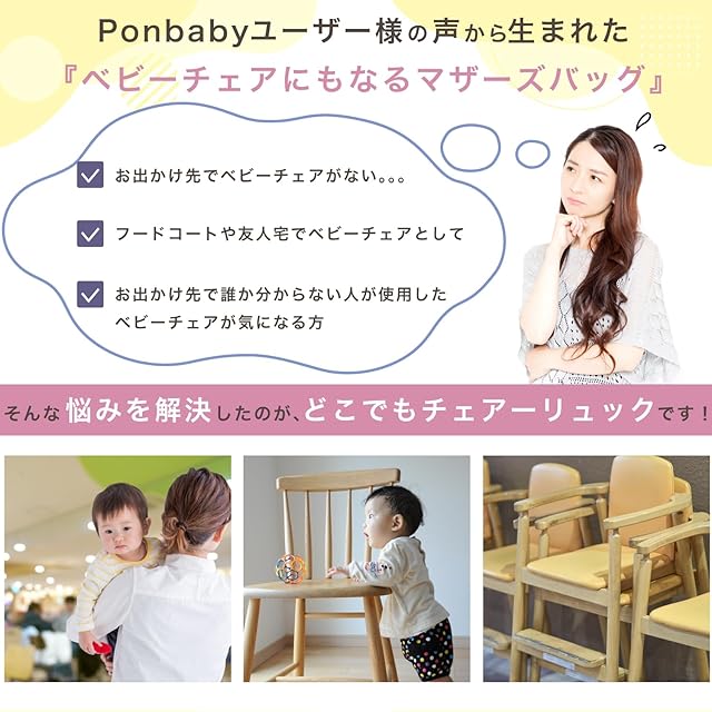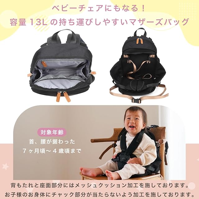 [Ponbaby] どこでもチェアーリュック 13L マザーズバッグ マザーズリュック ベビーチェアになるリュック