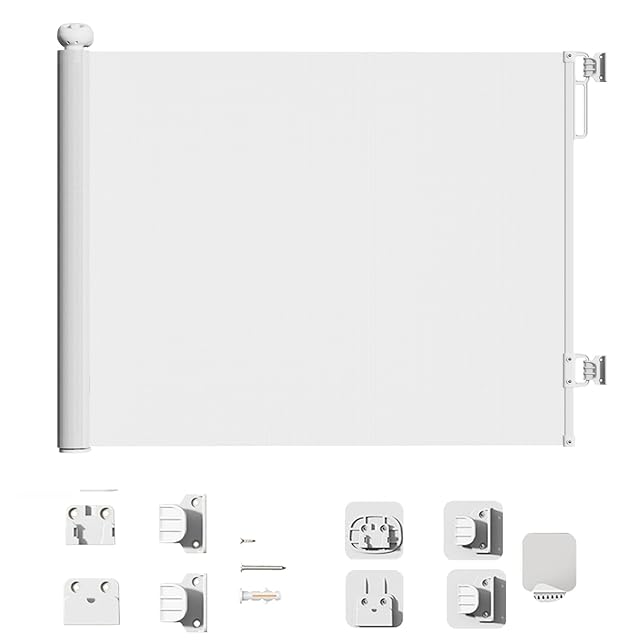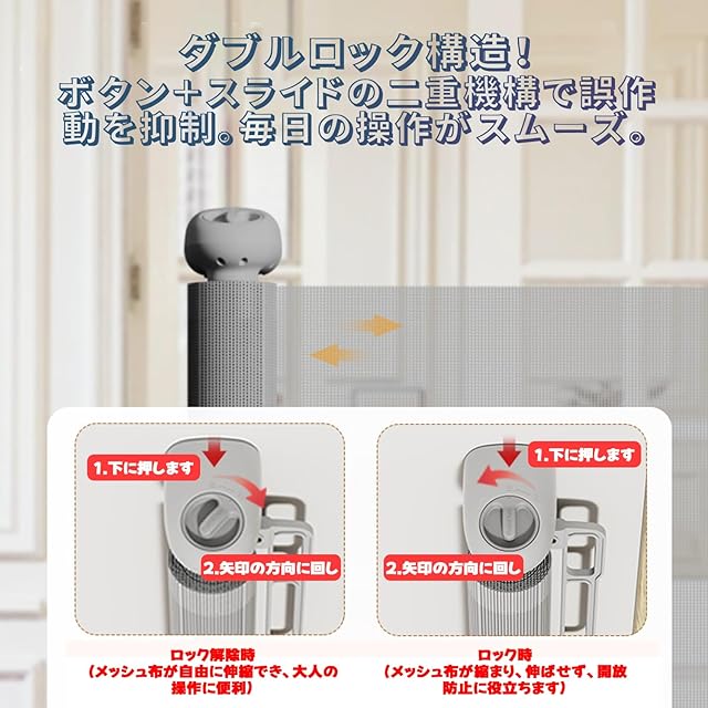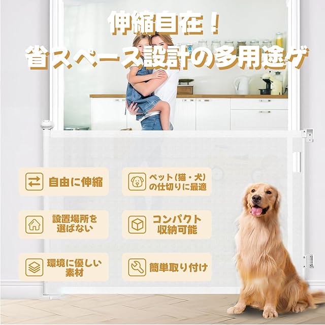 【Dzannc】ロール式ベビーゲート – 自動巻き取り&安全ロック搭載、豊富なサイズ展開、ネジ&粘着取付対応、ペット(犬・猫)対応、日語説明書付、室内安全対策 (ホワイト, 86*140cm)