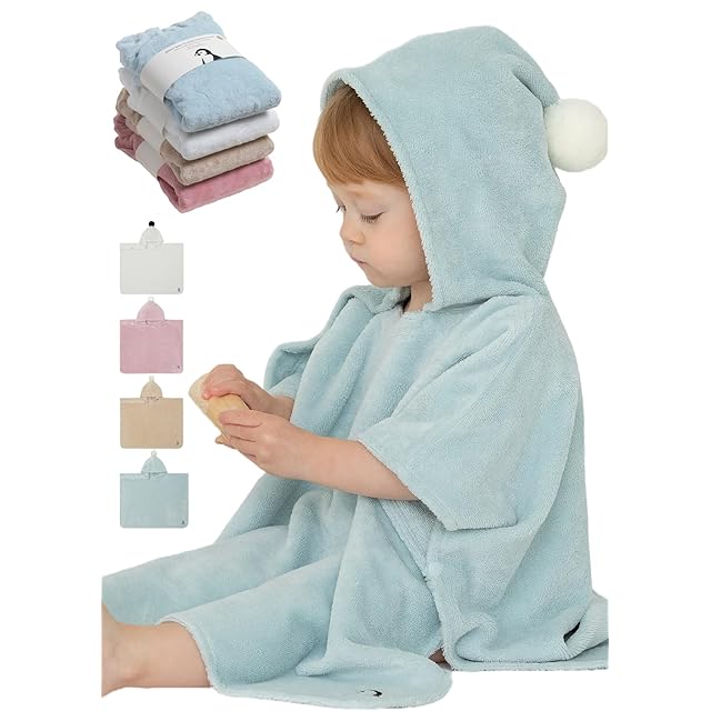 コニーベビーフードタオル(Konny) エコテックス認証 湯冷め防止 柔らか 吸水性 バスタオル お風呂 プール 沐浴 フード付き バスポンチョ ふわふわ 赤ちゃん 0歳~3歳 (ミント, Small)
