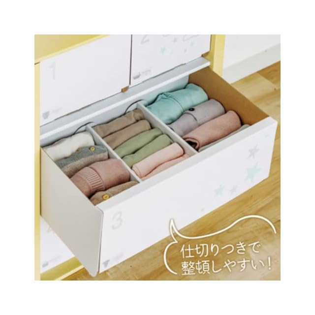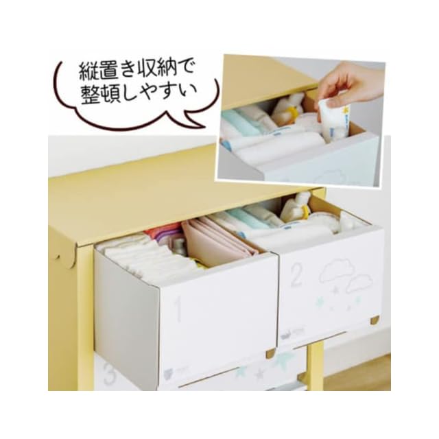 ②最適容量&”お世話ごと収納”で出し入れしやすい…必要なものがまるっと入る!すっきり縦型収納でモノを探す時間をカット。おむつ替え・沐浴・お着替え・おでかけ・おもちゃと、1つの引き出しに1つのお世話グッズをまとめられて管理しやすい