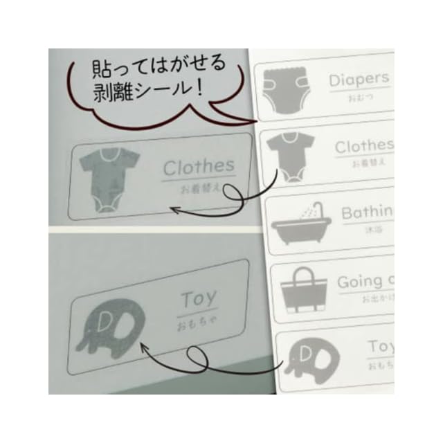 ③ひと目でわかる定位置管理&インデックスシールつき…剥離式のインデックスシールで家族だれでもわかる!戻せる!整理が続く!