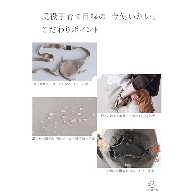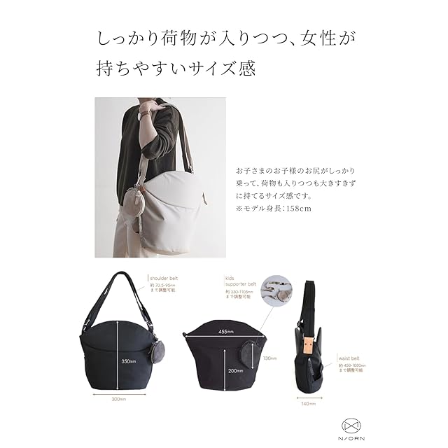 N/ORN(ノルン)は腰がしっかりすわったあと・また歩き始めて少し大きくなったお子様をさっと乗せ降ろし、抱っこできるバッグです。